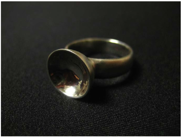 A silver ring that is both surprisingly beautiful and highly significant to its wearer. This ring celebrates a particular moment in Hindu mythology when a young boy is first recognized as a deity when he opens his mouth to reveal the entire universe. Similarly, the celebration ring seems to contain what is expected in a ring, but then one discovers that it in fact reveals the changing world that surrounds us. |